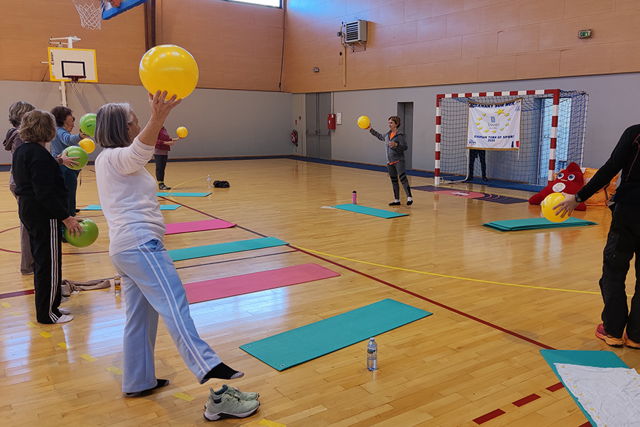 Pris en charge par la Conférence des financeurs (et donc entièrement gratuit pour les participants), ce programme de 6 mois est composé de 24 séances d’activités physiques adaptées (APA) d’une heure pour des personnes de plus de 60 ans éloignées de la pratique. Les séances sont animées par un éducateur APA. À Sanary, il s’agit de Sylvie Ghibaudo-Diouet, de Sanary Sport Santé Détente.