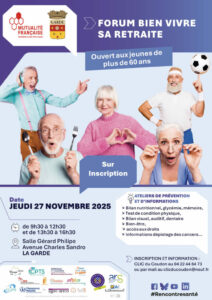 - à La Garde le jeudi 27 novembre, de 9h30 à 16h30 (salle Gérard Philippe) – Inscriptions obligatoires au 04.22.44.84.73.