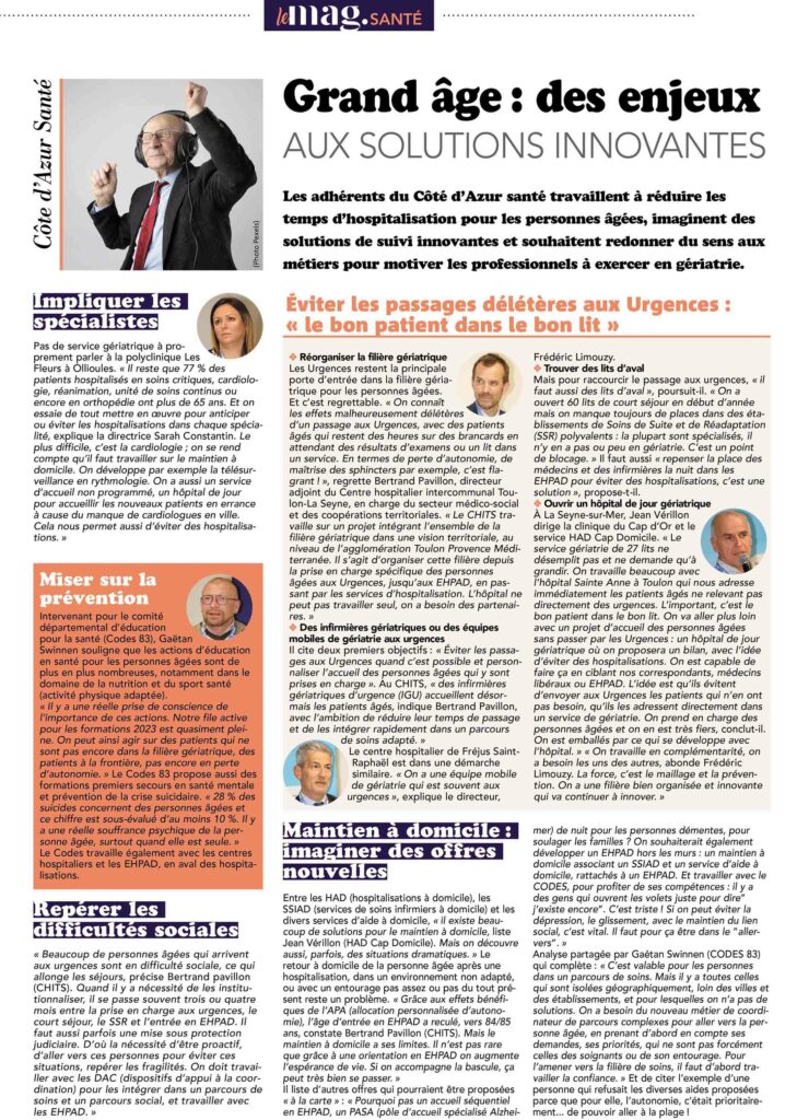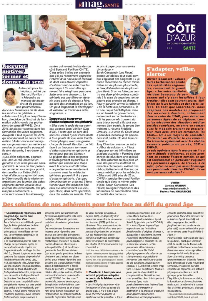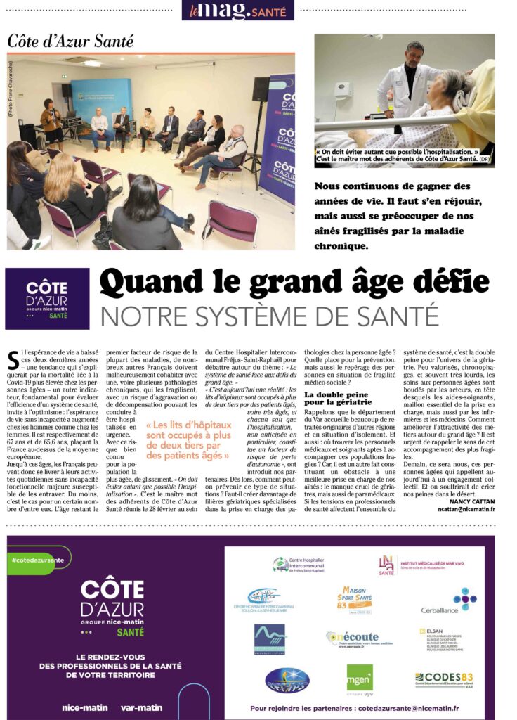 Découvrez-ci dessous l’ensemble de l’article dédié à cette thématique santé & grand âge dans le Mag-Santé (Nice-Matin)