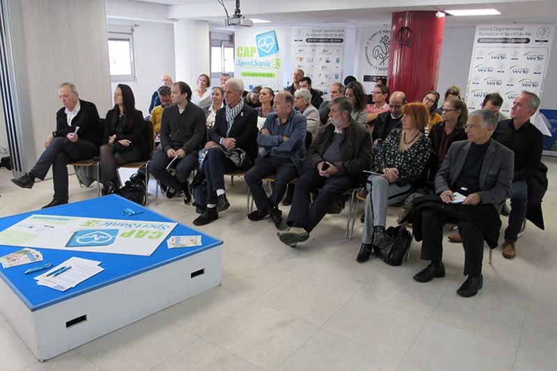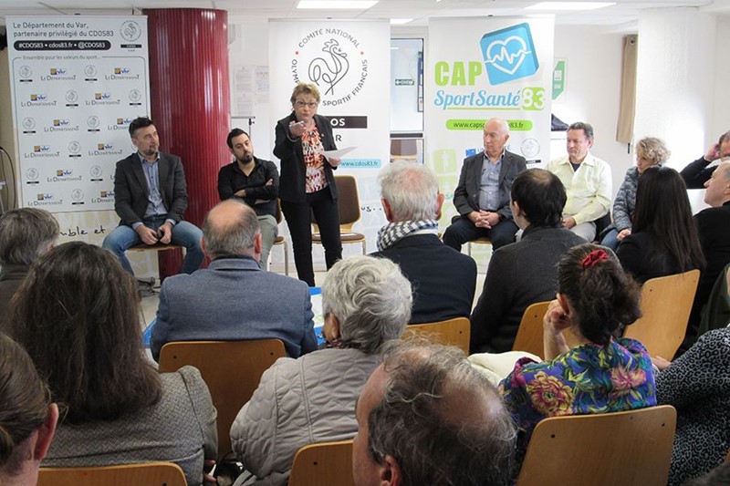 Ce vendredi 13 décembre 2019, le projet « Maison Sport-Santé 83 » a été présenté aux élus locaux, à la presse, à des hopitaux et centres médicaux et à des associations partenaires des trois structures menant le projet. Annie Pappafava, vice-présidente du CROS, était également présente. Tour à tour, Lucienne Roques (présidente du CDOS), Nicolas Castan (directeur du CDOS), Guillaume Laprade (UFOLEP), Gilbert Lair (AIME2S) ainsi que les médecins Jean-Marie Lamoulère (CDOS) et Sylviane Colombiani (AIME2S) ont pris la parole pour expliquer ce projet.