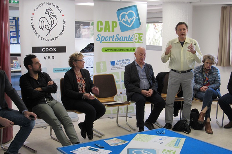 Cette « Maison Sport-Santé 83 » proposera trois points d’accueil et d’informations, un à Toulon (animé par le CDOS), un à La Seyne-sur-Mer (animé par UFOLEP) et un à Draguignan (animé par AIME2S), en partenariat avec les communes, l’UFR-STAPS de l’Université de Toulon et en relation avec les milieux médicaux et hospitaliers et des associations accueillant des patients en Affections de Longue Durée (ALD). Michel Bonnus, adjoint aux sports de la Mairie de Toulon, et Christian Barlo, son homologue de La Seyne-sur-Mer ont tenu à exprimer leur soutien au nom des communes concernées (Stephan Ceret, adjoint aux sports de Draguignan, était excusé).