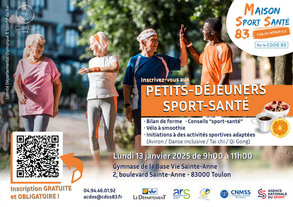 Après plusieurs mois d’absence, l’opération des « Petits-déjeuners Sport-Santé » fera son retour en 2025 et proposera son prochain rendez-vous le lundi 13 janvier de 9h à 11h à Toulon, dans le gymnase de la Base Vie Sainte-Anne (2 Boulevard Sainte-Anne).