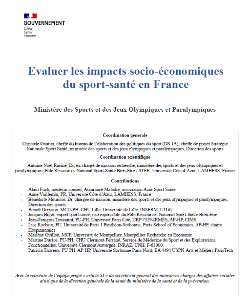 L’objectif de ce rapport est d’explorer la littérature afin de recenser les travaux qui évaluent les impacts socioéconomiques des actions relevant de la politique nationale sport-santé en France afin d’avancer des pistes de réflexion sur le sujet et de favoriser le déploiement de ce type de recherche. En se basant sur 19 études menées en France, ce rapport montre que la lutte contre la sédentarité et la promotion des activités physiques et sportives relevant de la politique sport-santé peut générer des économies substantielles. Néanmoins, de nouvelles études doivent être encore développées afin d’estimer plus précisément l’ampleur des économies qui pourraient être générées en fonction des milieux et des populations ciblées.