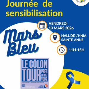 Retrouvez la Maison Sport Santé 83 Toulon Métropole avec un quiz Sport-Santé ainsi que son stand d’information à l’occasion de Mars Bleu lors d’une journée organisé par l’Hôpital National d’Instruction des Armées de Sainte Anne.