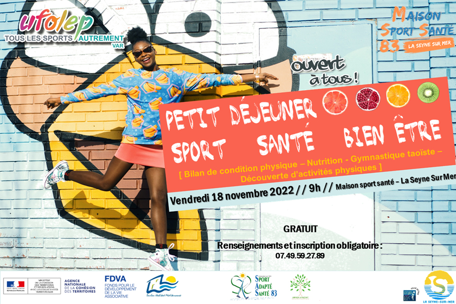 Vendredi 18 novembre à partir de 9h, retrouvez nous à la Maison Sport Santé de La Seyne-sur-Mer pour un petit-déjeuner sport et bien être !